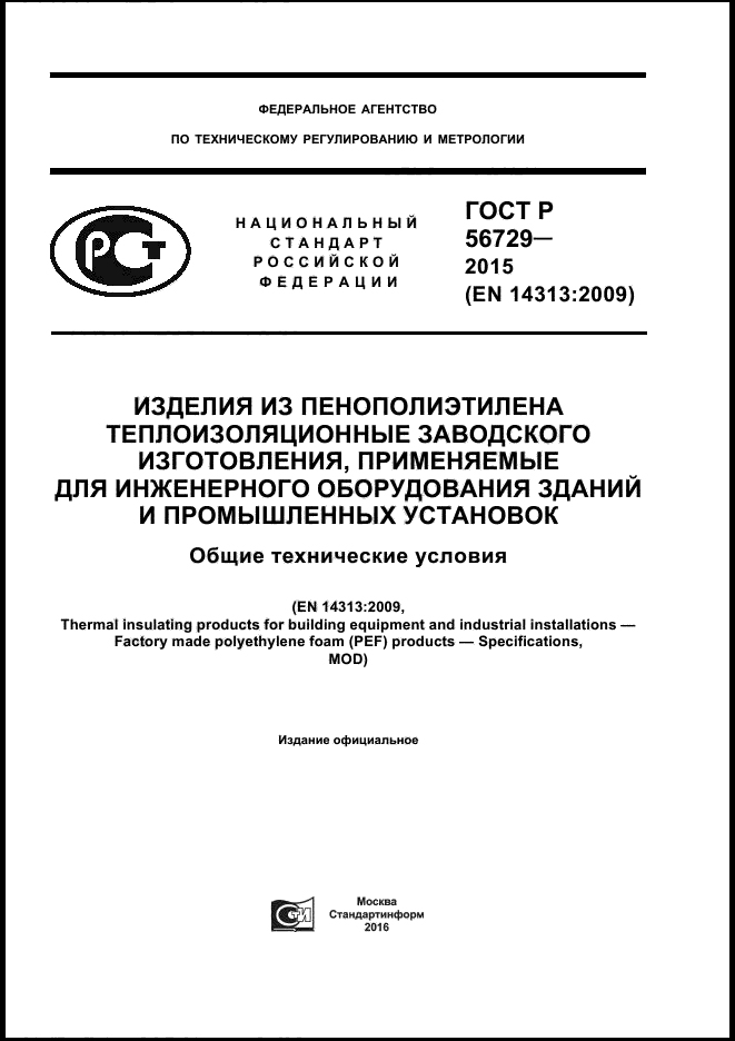 GOST R 56729-2015 (EN 14313:2009) establishes general rules for all manufacturers of foamed polyethylene insulation.